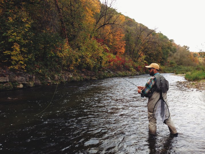 The closest quality trout rivers from Minneapolis are just over the border in Wisconsin. Rivers are lined up from west to east. The first river Minnesota fishermen come to on their journey east is the Kinnickinnic. It runs through River Falls, WI and is known for its abundance of browns. The second is the Trimbelle. It’s a smaller river with big fish. The third, and most popular, is the Rush River. It is known for its big browns and bluff-lined banks–absolutely beautiful scenery. On week nights, you may even come across fishermen who skipped out of work early to get extra time on the water.