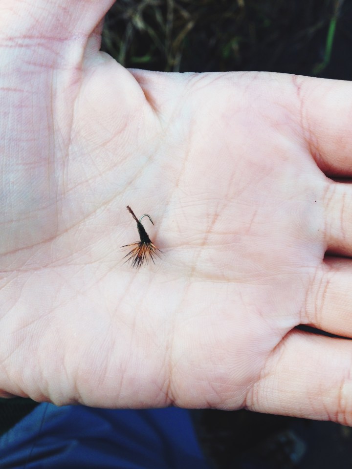 We arrived at the river and found more cars than normal lining the various pullouts on the winding county road. It wasn’t a good sign. The sun sets before 7:00 this time of year and it was already 5:15. If a spot is already full, you need to find another spot, which could mean an additional 15 minutes before you can make it onto the water. If the next spot is full, you need to find another. So you could imagine our relief when we saw just one guy near the bridge we use to access the water. Phil asked him if he was planning on working upstream or downstream. He said he was going to sit in just one spot, atop a sandbar at the end of a stretch of 200 yards of slow water. After we got onto the water, I looked down the river at the old man and he was lying down on the sandbar. LYING DOWN. I’d be lying if I said I wasn’t jealous. (That was a pun). The man also said we just missed a hatch. Since trout have tiny bellies, this could mean they wouldn’t be feeding. If the title of the post didn’t spoil it, missing the hatch meant the trout weren’t feeding.