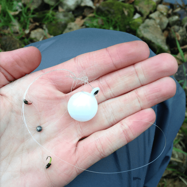 Five days after I saw the photo, I was on the Whitewater working a six-feet-deep hole on a river that is only 12-feet-wide at that point. Upstream was a fast section. Down stream was a fast section. Behind me was a steep, brushy bank. Across the river is a slew of logs. This required technical casting. Working a dry fly would have been easy, but the same does not apply when working a double-nymph system with a split-shot sinker an a strike indicator six feet above the bottom nymph. It was only inevitable to get a tangle. And I mean a TANGLE.
