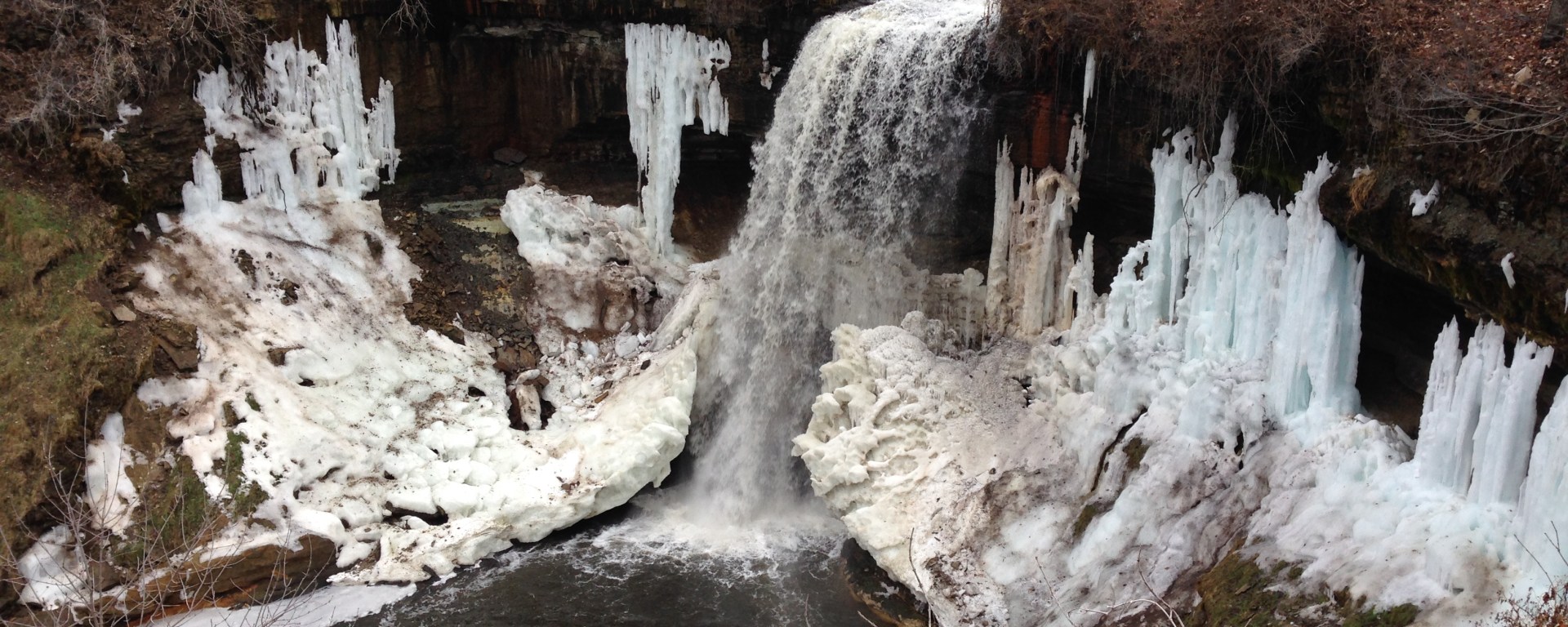 Back in November, we were planning on skiing on Christmas. No snow meant we needed a plan B. Hiking. Our plans were in Apple Valley, and since Minnehaha Falls is on the way, we identified our setting.