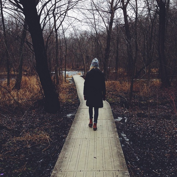 It really was a perfect day to hike by the falls. The parking lot was empty when we arrived. When you need to spend time outdoors like we needed to, the last thing we wanted was to navigate a sea people to get to the trails below the falls. And just as we needed, the trails were empty. A couple walking a dog across the creek and another couple sharing a flask by the river were the only folks we saw. A thick layer of clouds blocked the sun, wind was absent and it almost felt humid. This hike was exactly what we needed.