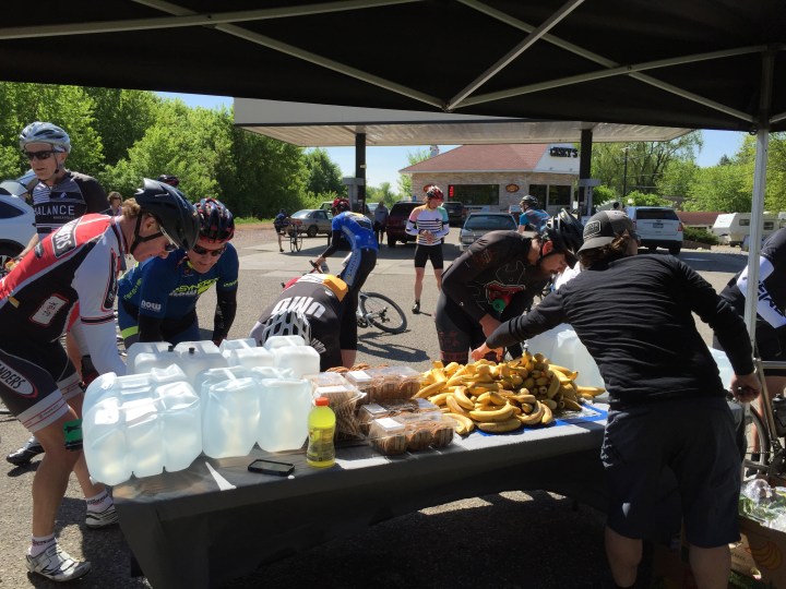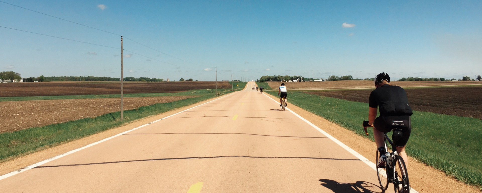 The first 30 miles were great. Wind was at our backs and the sun was quickly warming the day. The first rest stop was at a Casey’s (a different Casey) General Store in Carver, which is right on the Minnesota River. A Twin Six tent welcomed riders with bananas, water and granola bars. We weren’t at the rest stop for more than two minutes when we could hear the low hum of carbon wheels from behind the trees. Just then, $1M in bicycles and gear appeared at 30mph. Two of the riders stopped, 38 continued onward. My group was glad to allow them to pass us at a rest stop instead of on the course. We hung around for a few more minutes, then hit the road again.