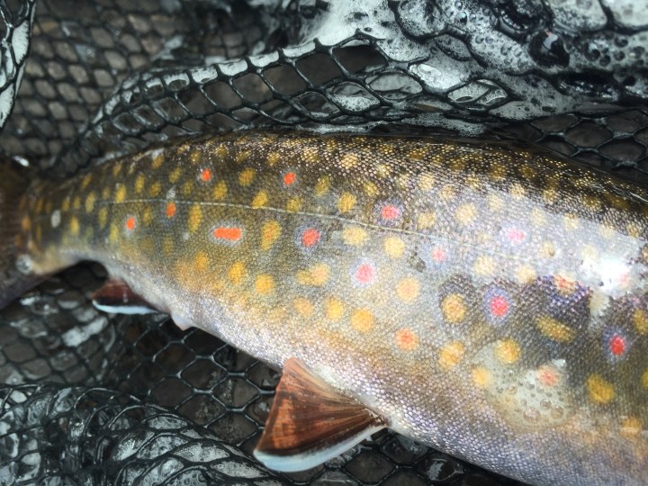 First cast yielded a 9″ brookie. I placed a #12 Adams on the foam. It was gone in two seconds. When I was watching the fish rise, I couldn’t tell the species. What a fucking pleasant surprise to see a beautiful brookie to appear in my net.
