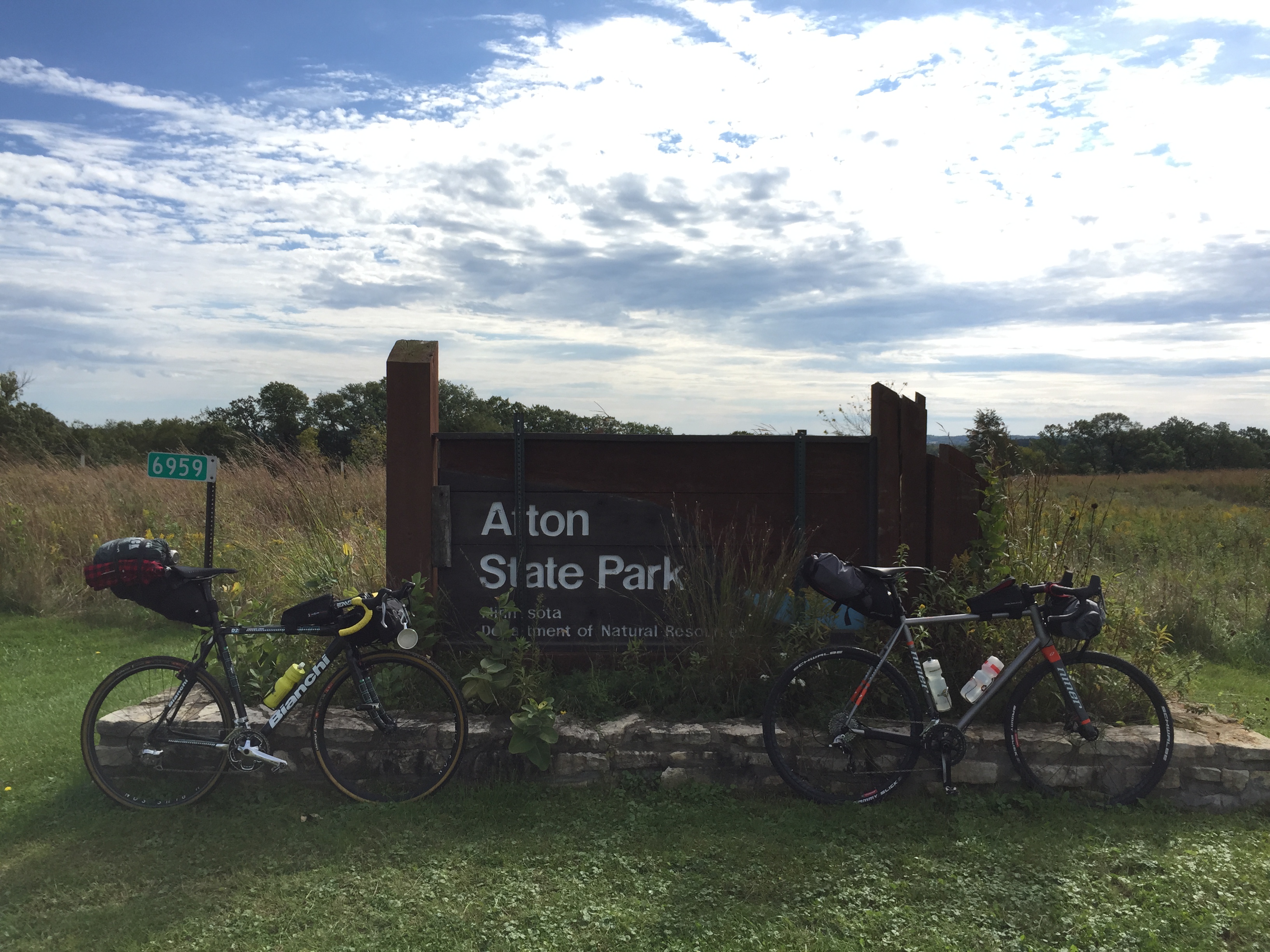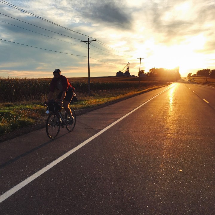 Three of us loaded up our bikes and headed west. The sun sets quickly this time of year. Last light comes by 7:30. We met at 4pm and planned on two hours of riding, which would allow us to set up camp in the daylight. As with most adventures, things didn’t go as planned. We left Minneapolis by 4:30 with the intentions of stopping at a bar near the park for dinner. Not only was the bar closed, it was for sale. So our sweaty trio moved our dinner to the golf course clubhouse, where Tanya fed us nachos and wings and cookies and double-pattie burgers and fries and too much Surly Furiouses (Furioui?). Tanya deserves sainthood.