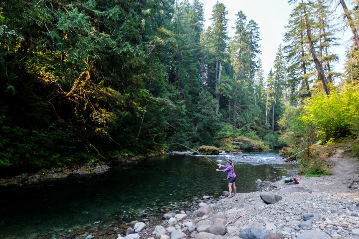 It’s not the most storied river in Oregon. When it comes to fishing in this state, I’d be surprised if most folks even mentioned the Breitenbush. It begins on the slopes of Mt. Jefferson and ends in Lake Detroit, and it’s as cold in the summer as most northern rivers are during spring runoff. My Portland friends said the trout are many in number, but small and require boulder hopping to find them. I was sold.